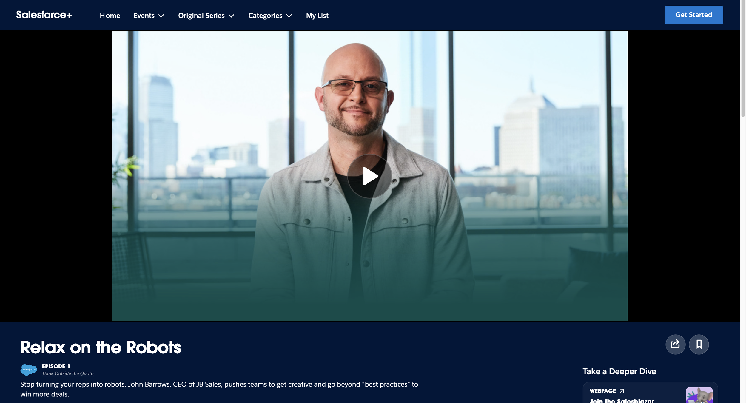 The video series lived on Salesforce+. Here are some thumbnails. View the series here.